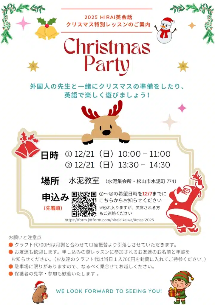 先週、講師よりクリスマスレッスンのお知らせチラシを配布いたしました。
